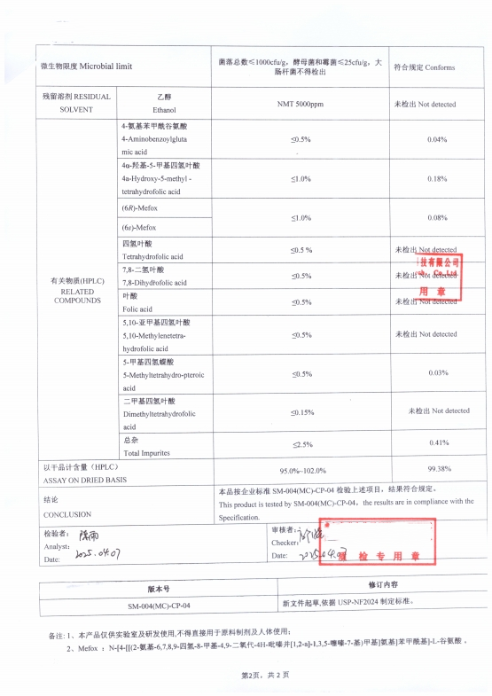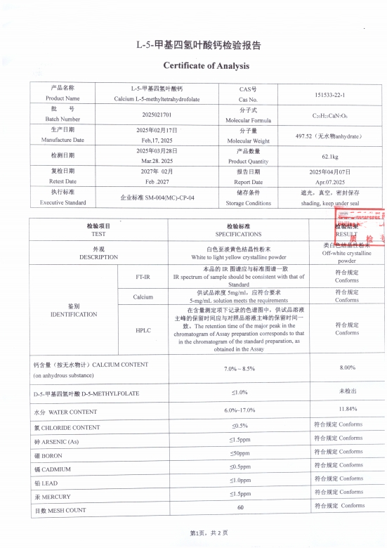 Tên khác: L-5-methyltetrahydrofolate canxi