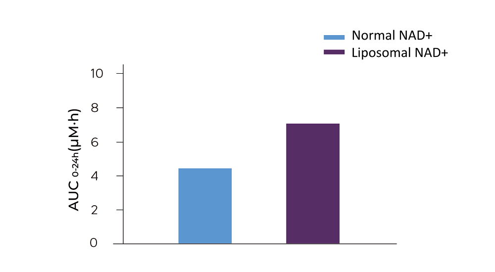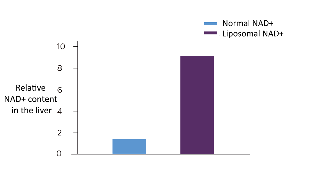 Các nghiên cứu trên động vật đã chỉ ra rằng Liposomal NAD+ làm tăng hàm lượng NAD+ tương đối trong gan lên khoảng 9 lần.